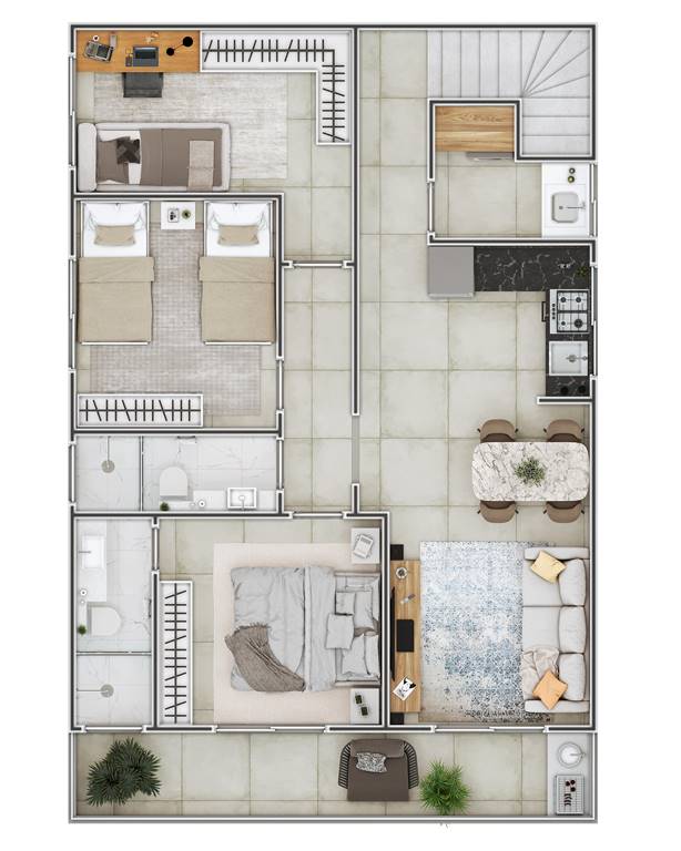2 dormitórios (sendo os 2 suítes)